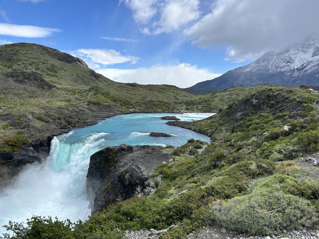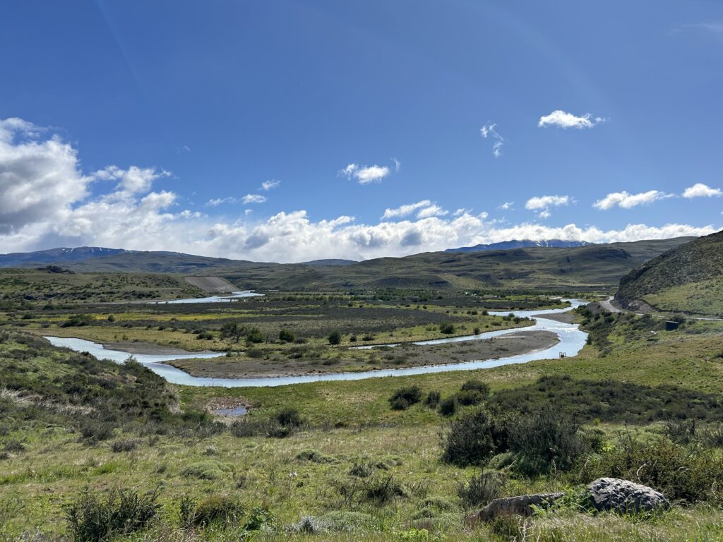 Die Laguna Azul verdankt ihren Namen der intensiven blauen Farbe ihres Wassers, die durch das Schmelzwasser der Gletscher und die mineralreiche Umgebung entsteht. Sie liegt in einem relativ flachen Gebiet und bietet eine friedliche Atmosphäre, die von den dramatischen Gipfeln und den weiten, offenen Steppen umgeben ist. Der See ist ein großartiger Ort, um wilde Tiere zu beobachten, vor allem Vögel wie Schwäne, Flamingos und andere Wasservögel.